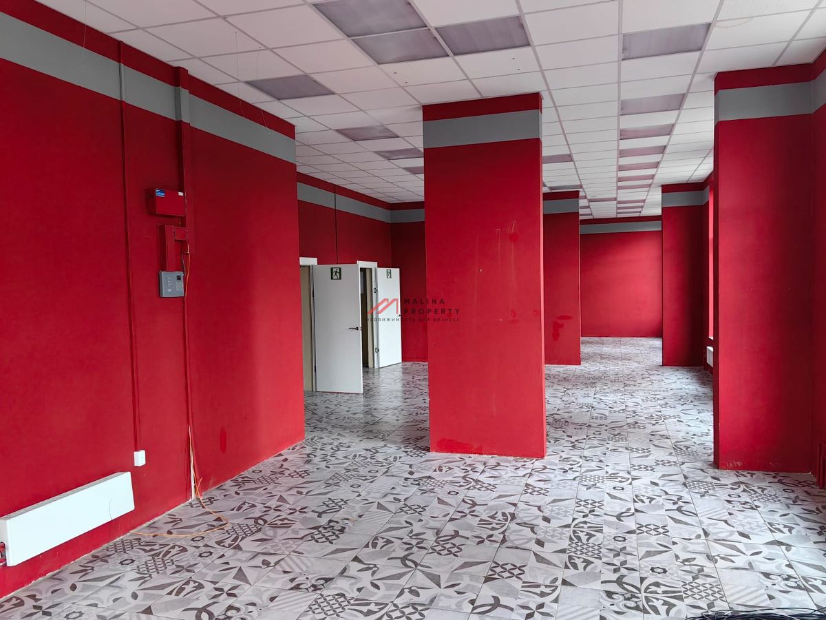 Общая площадь 132,2 м2 на 1 этаже, открытая планировка, отдельный вход с фасада, высота потолка 4 м, витринные окна.