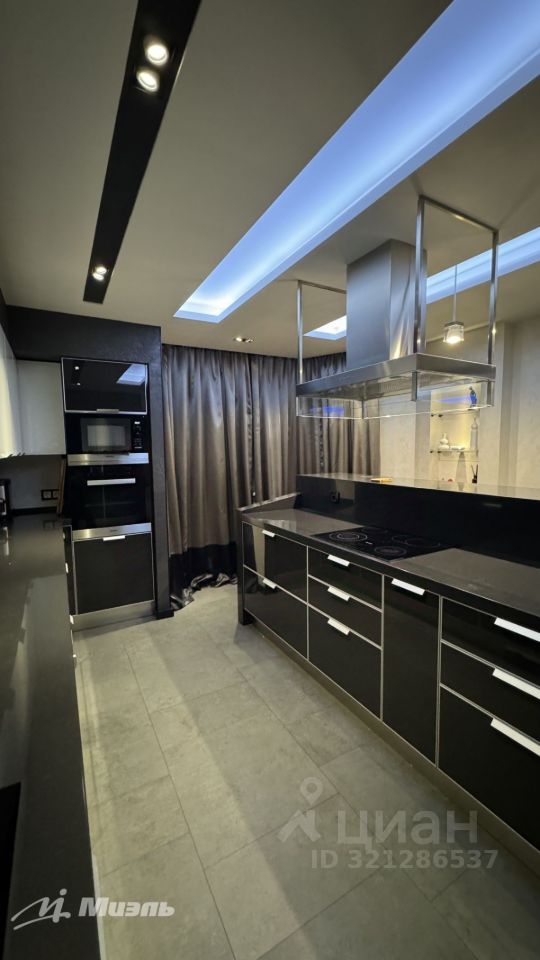 Современная кухня с дизайнерским гарнитуром, столешницей из натурального камня и встроенной бытовой техникой премиум класса.