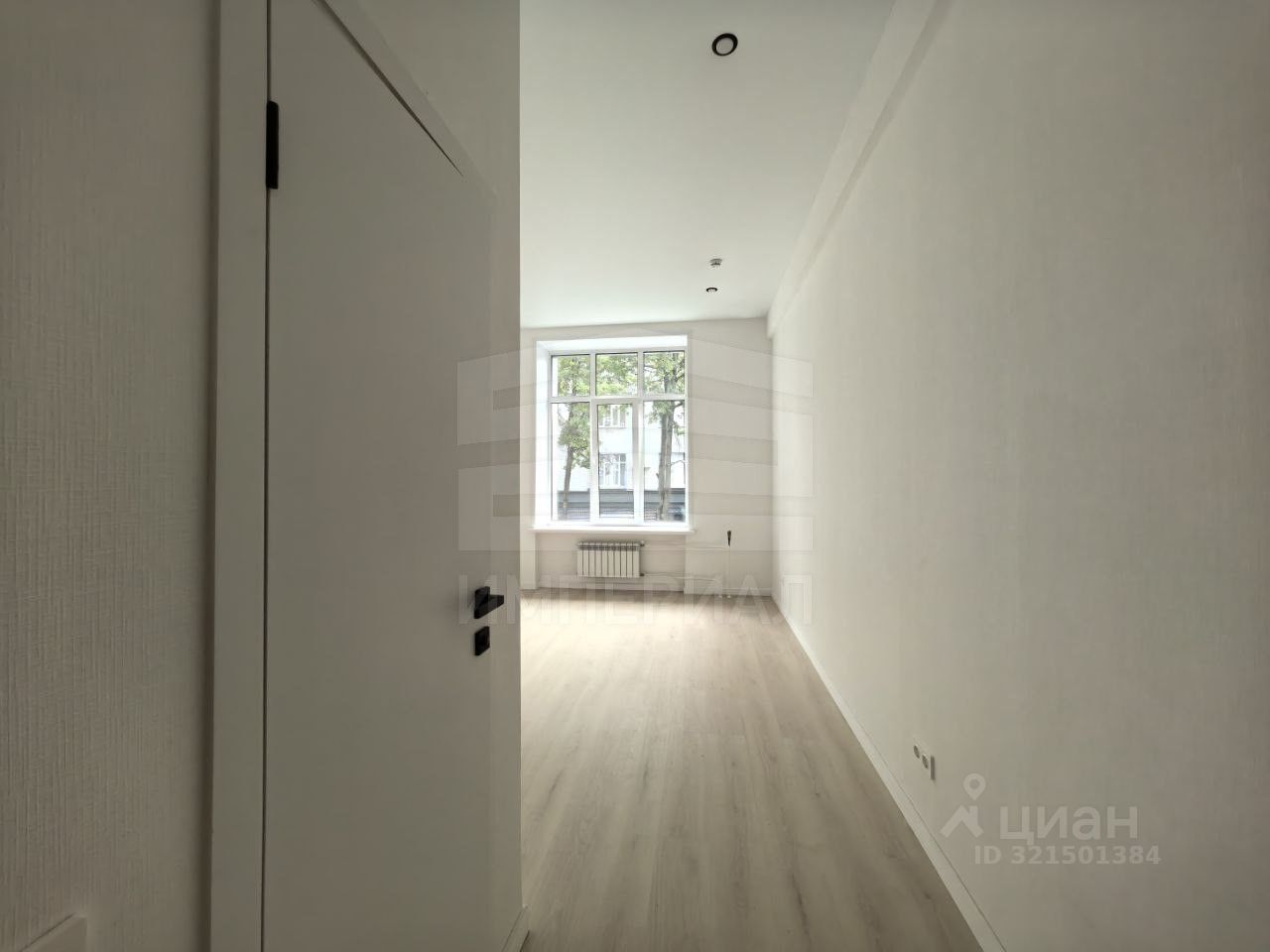 На стенах поклеены обои под покраску, на полу постелен ламинат с плинтусами и откосами. Есть вытяжная вентиляция в санузле и на кухне, выходы хв/гв, место под раковину на кухне. Кроме того, в помещениях уже есть выключатели освещения, розетки для бытовой техники и роутера, а также сделаны закладные для оптоволокна для интернета.