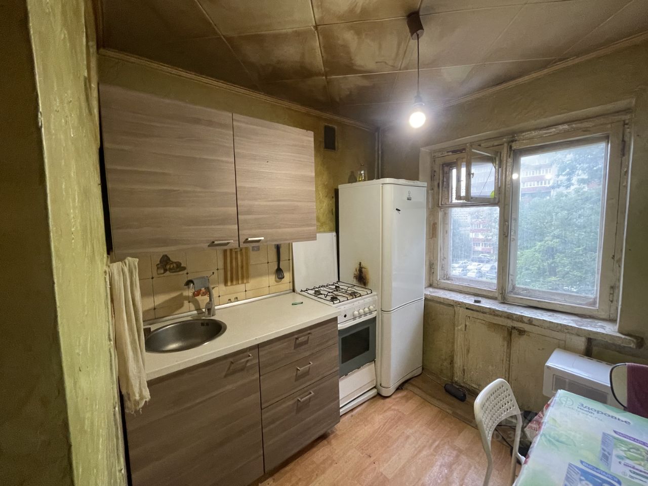 Квартира без ремонта, что позволяет вам воплотить все свои дизайнерские идеи. Санузел совмещенный, есть балкон, с которого открывается вид на двор.