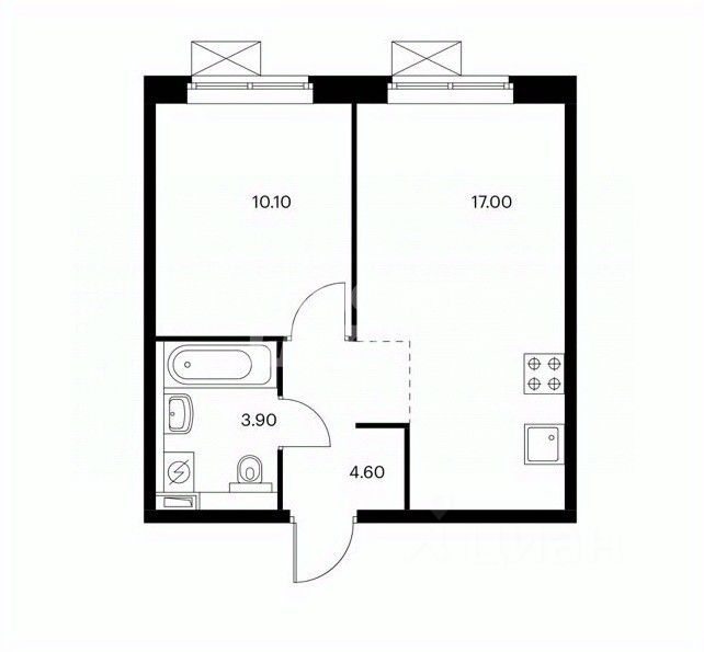 Изолированная спальня, просторная кухня-гостиная с удобным зонированием, совмещенный с/у.