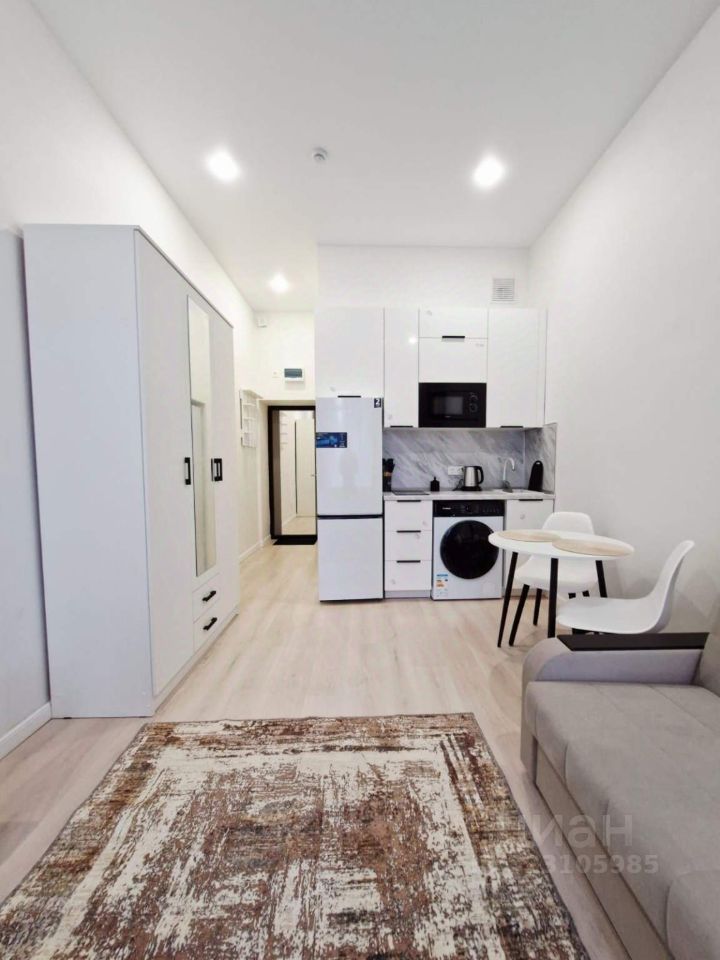 Уютная студия с мебелью и техникой. Площадь студии 17.4 м2. Стоимость аренды 45000 р. + 45000 р. (страховой депозит) + оплата по счетчикам!