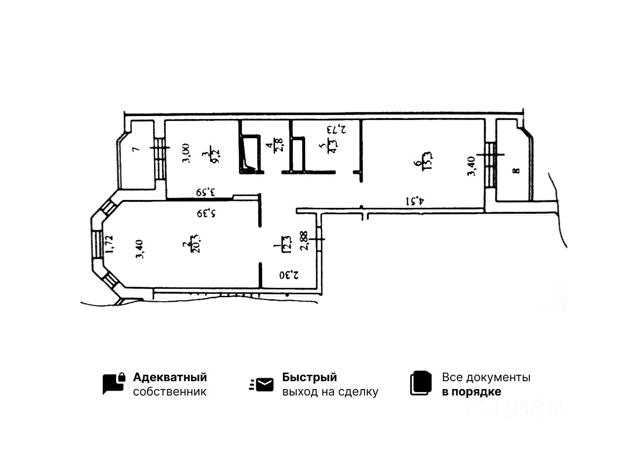 теплая, удачная планировка - распашонка, большие квадратные комнаты, эркер...