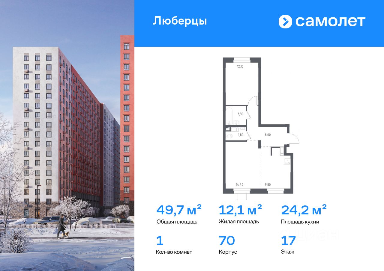 Строим кварталы для жизни с заботой о будущем. Предлагаются 1-комнатные апартаменты комфорт-класса 49,7 кв.м в корпусе 70 на 17 этаже, в ''Люберцы''