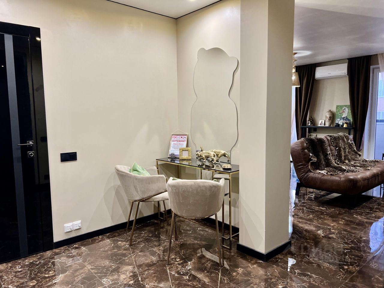 В квартире выполнен дизайнерский ремонт, создающий атмосферу комфорта и современности. Просторная кухня-гостиная площадью 25,9 кв. м станет отличным местом для семейных обедов и встреч с друзьями. Совмещенный санузел оформлен в современном стиле. Лоджия добавляет дополнительное пространство для отдыха и хранения. Есть вместительная гардеробная - 5,6 кв.м. Установлен теплый пол во всей квартире.