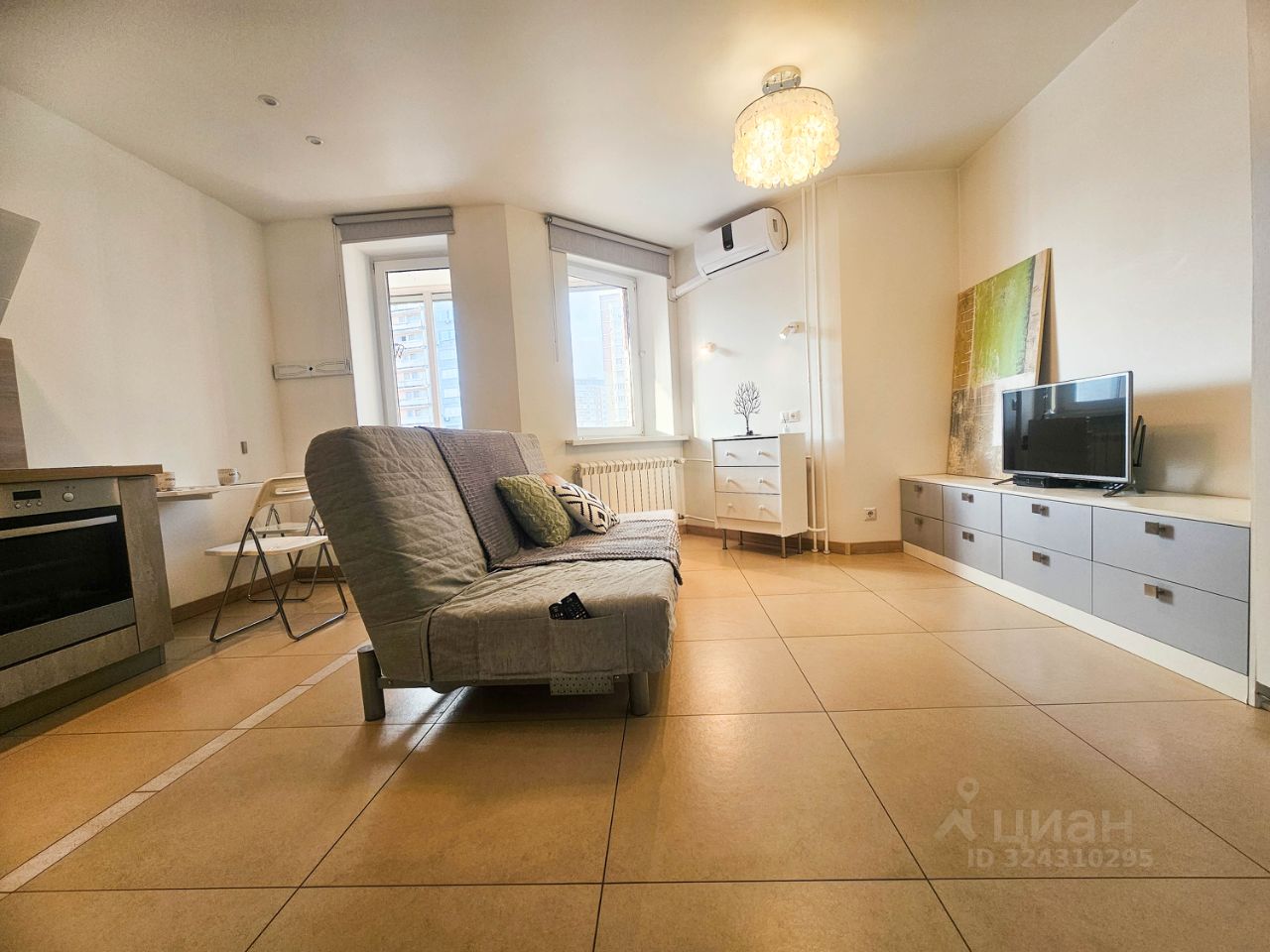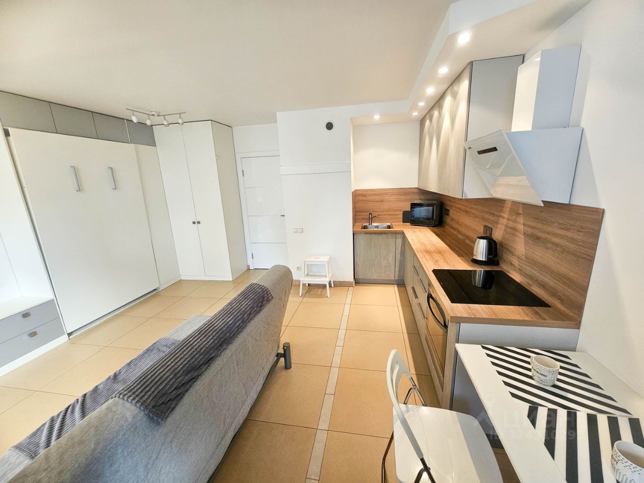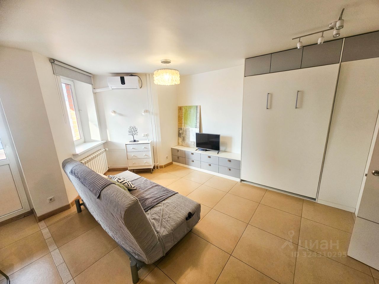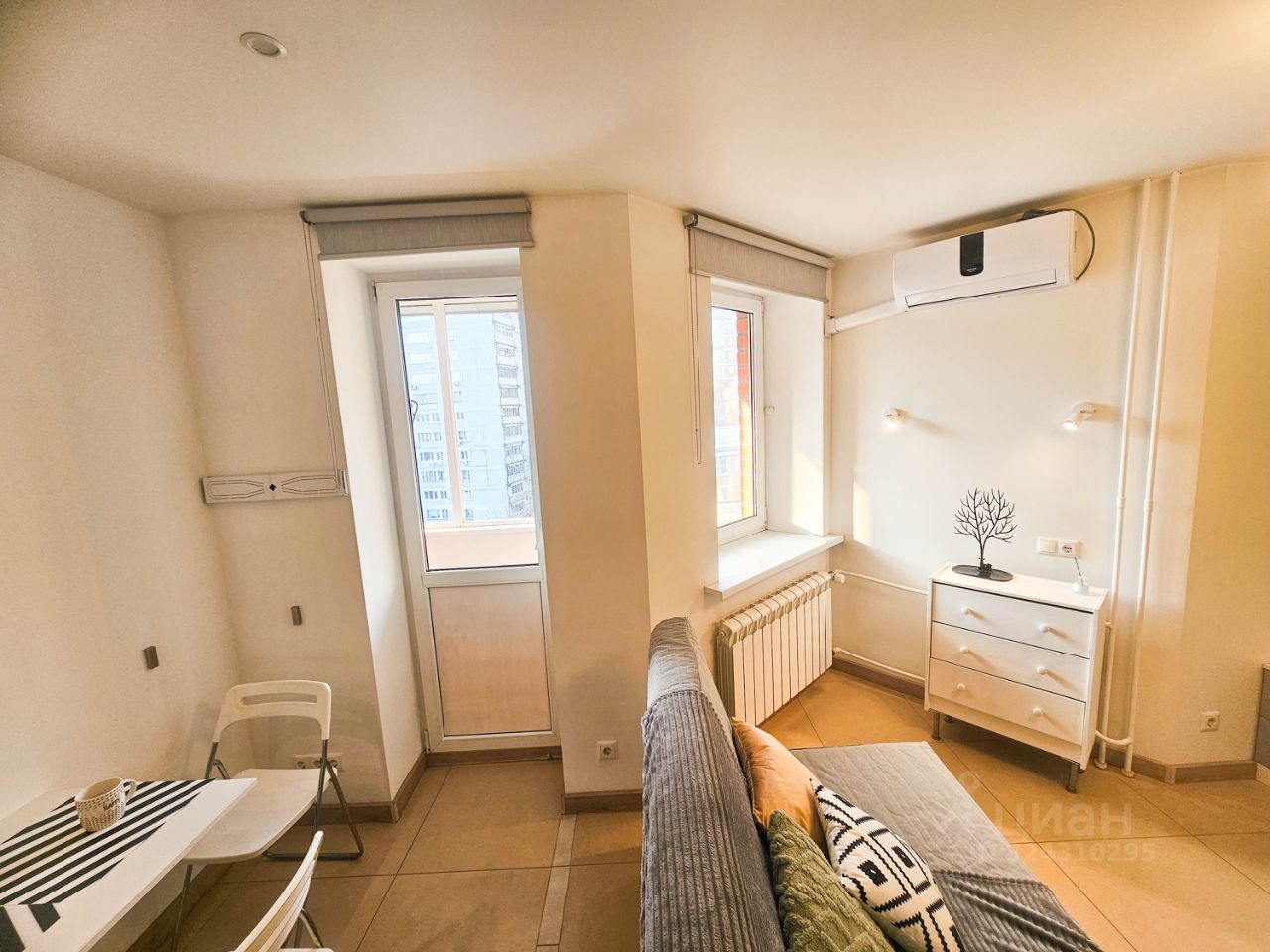 Однушка студийного типа с большой благоустроенной лоджией.