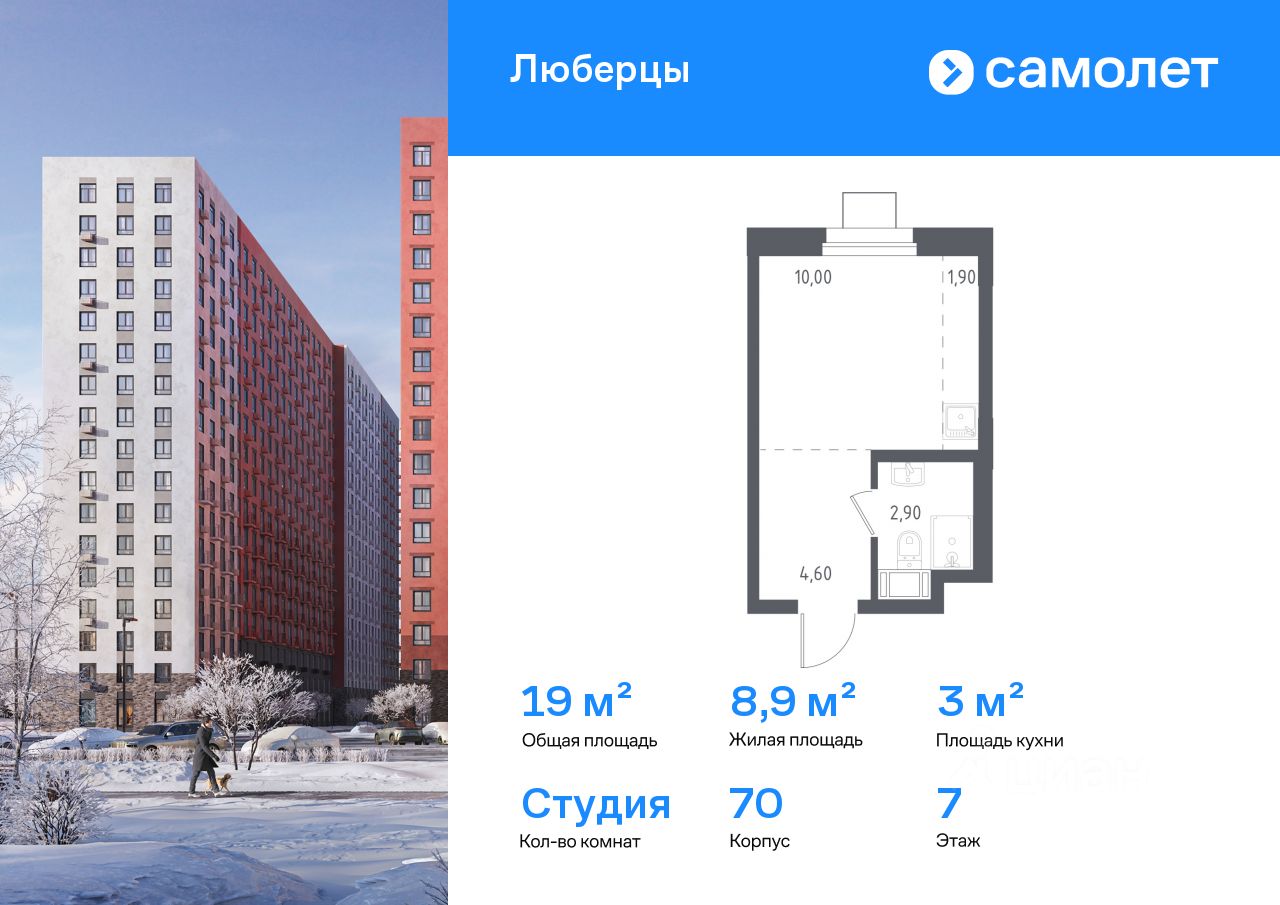 Строим кварталы для жизни с заботой о будущем. Предлагаются апартаменты студия комфорт-класса 19 кв.м в корпусе 70 на 7 этаже, в ''Люберцы''