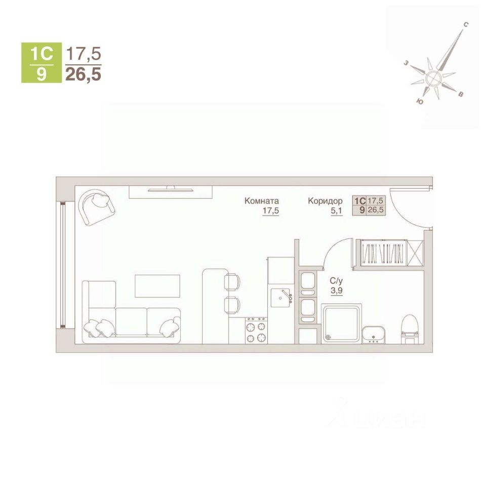 Общая площадь26,5 м2