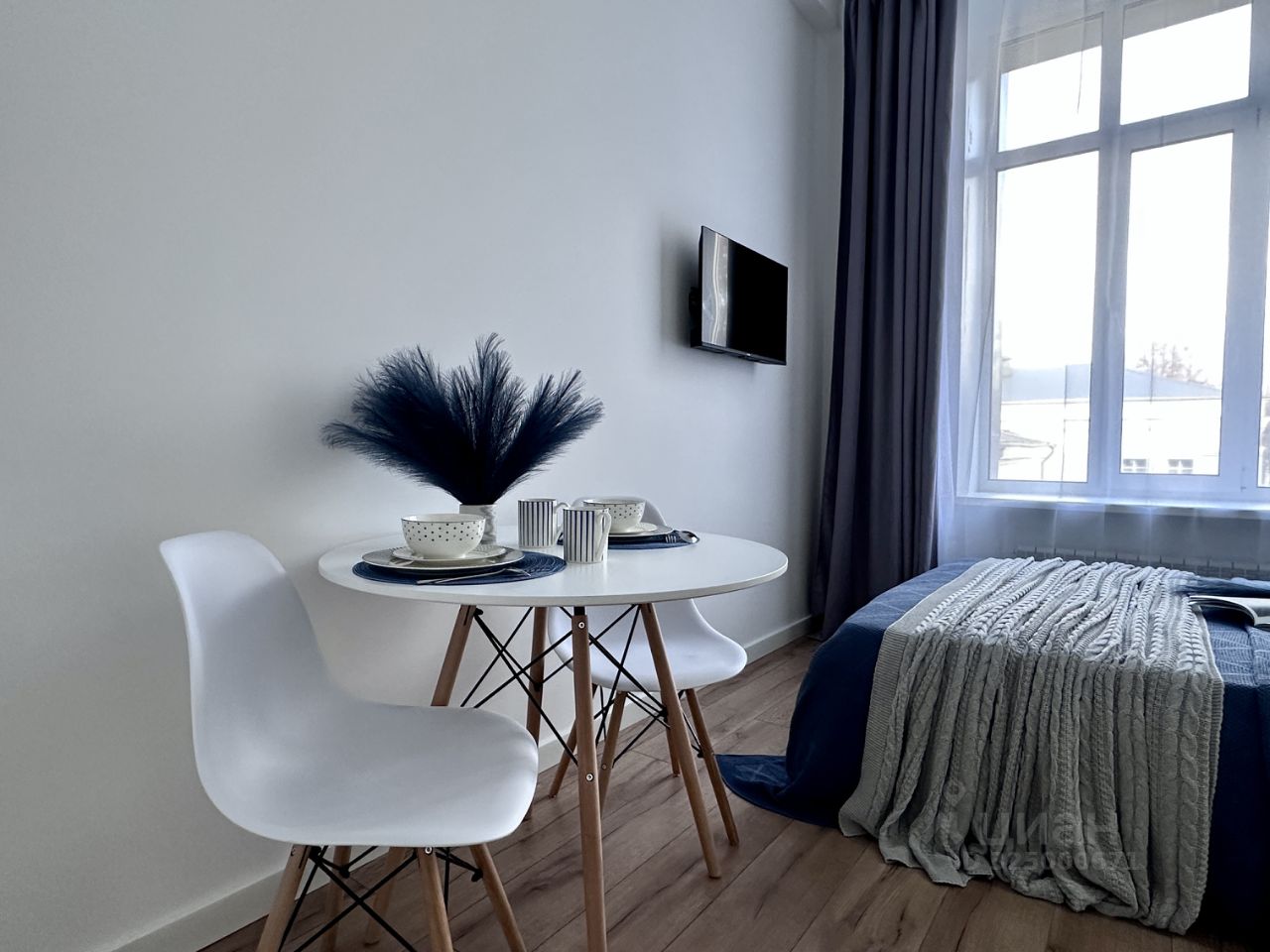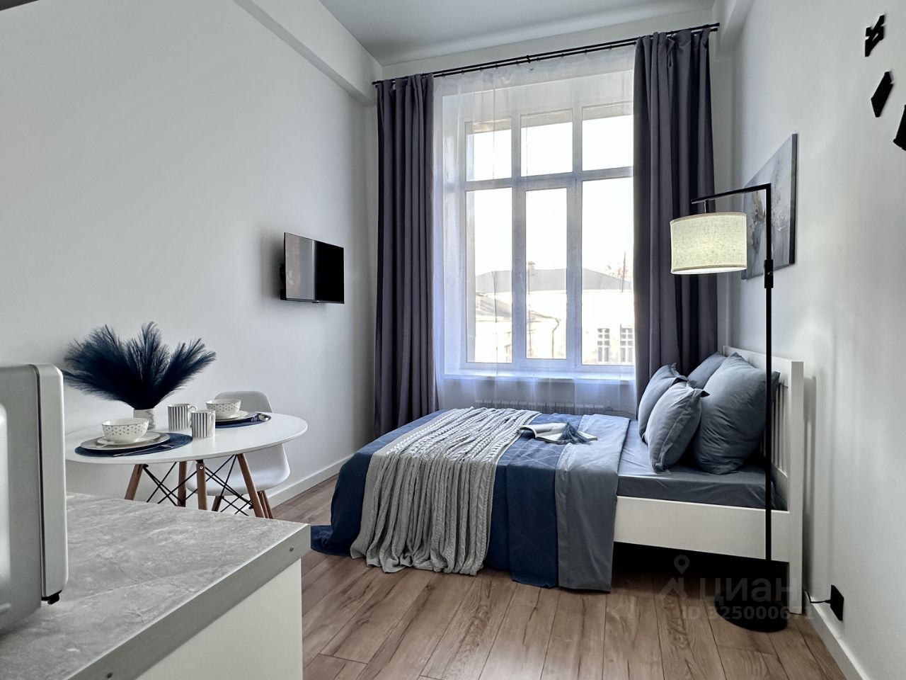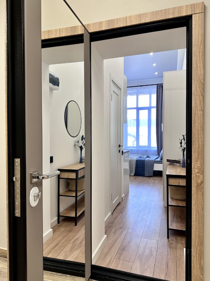 Стильная студия в новом комплексе, после дизайнерского ремонта от собственника. Полностью меблирован и укомплектован техникой. Все сделано очень качественно. Продается с мебелью техникой, предметами интерьера , текстиля и декора.