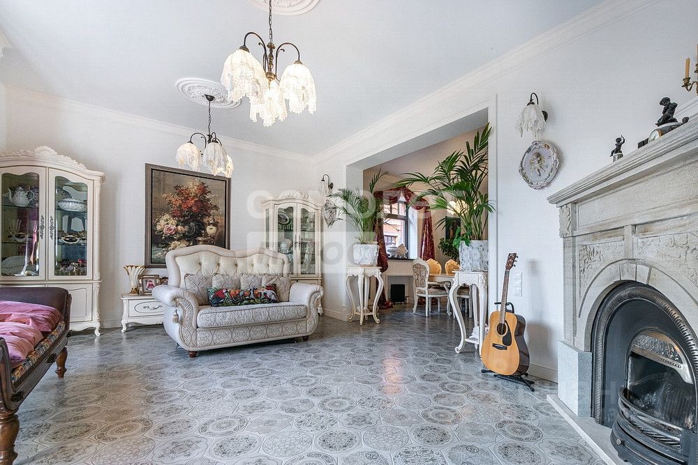 Стены выполнены частично под покраску и частично использованы коллекционные обои. В зале оборудован дровяной камин с английской топкой. Зона кухни укомплектована бытовой техникой ( индукционная плита, духовой шкаф, п/м машина, холодильник, СВЧ. Для напольного прорытия использован паркет СВМ Чехия.