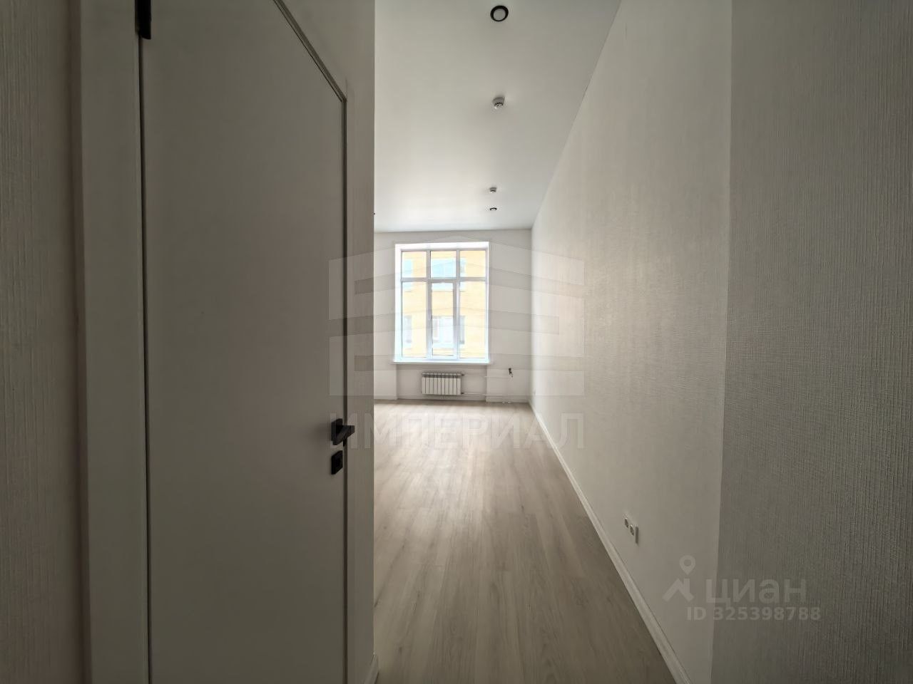 На стенах поклеены обои под покраску, на полу постелен ламинат с плинтусами и откосами. Есть вытяжная вентиляция в санузле и на кухне, выходы хв/гв, место под раковину на кухне. Кроме того, в помещениях уже есть выключатели освещения, розетки для бытовой техники и роутера, а также сделаны закладные для оптоволокна для интернета.