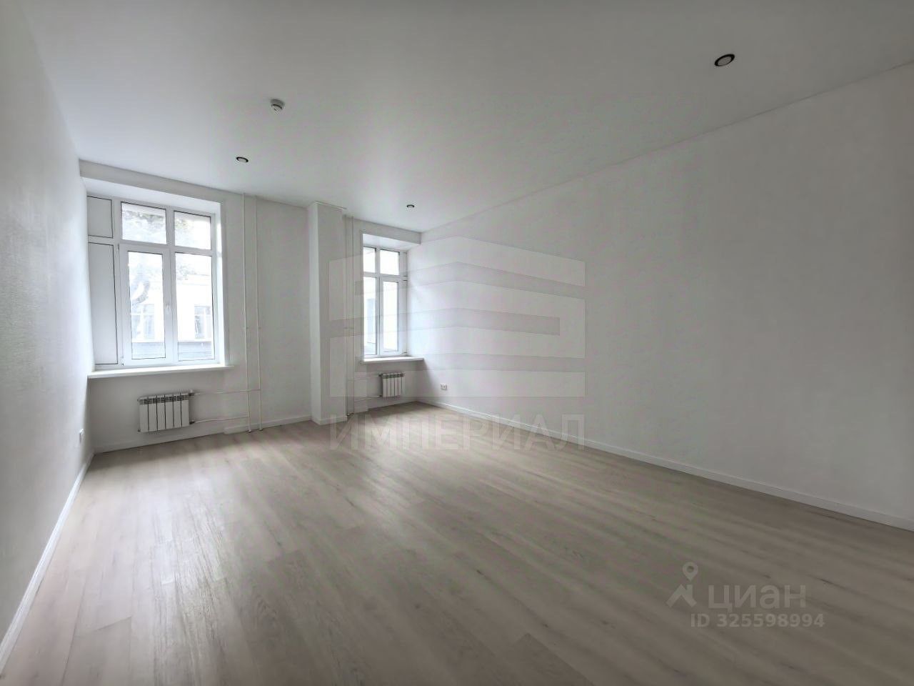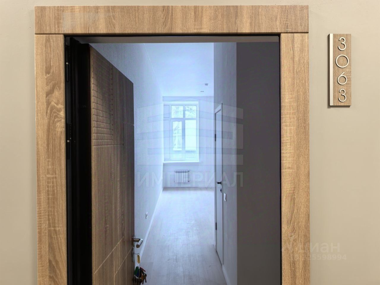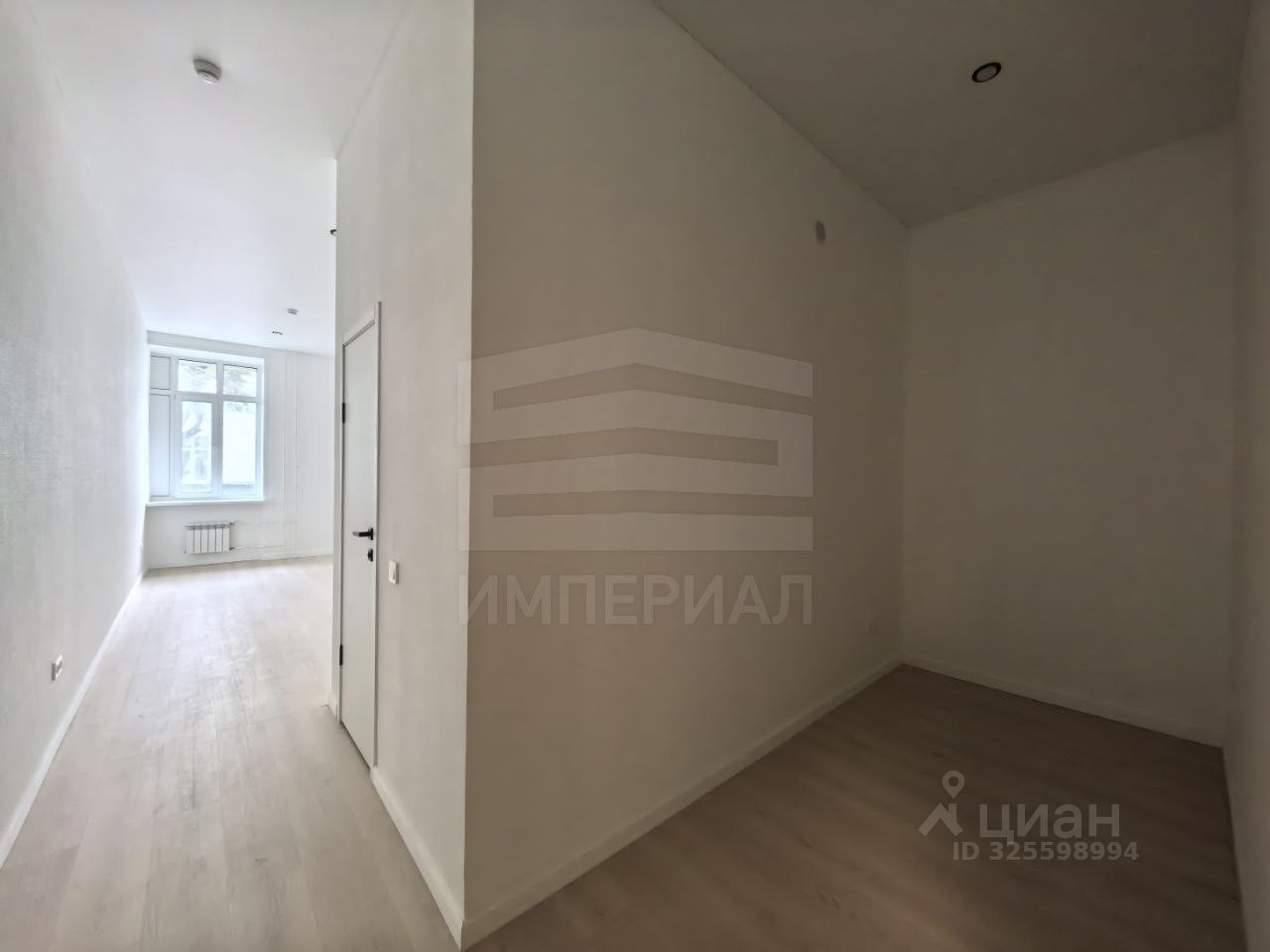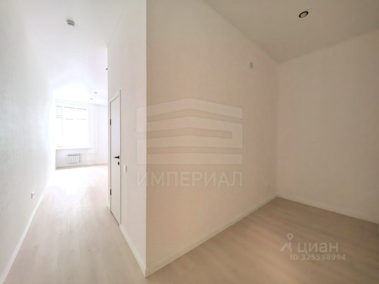На стенах поклеены обои под покраску, на полу постелен ламинат с плинтусами и откосами. Есть вытяжная вентиляция в санузле и на кухне, выходы хв/гв, место под раковину на кухне. Кроме того, в помещениях уже есть выключатели освещения, розетки для бытовой техники и роутера, а также сделаны закладные для оптоволокна для интернета.