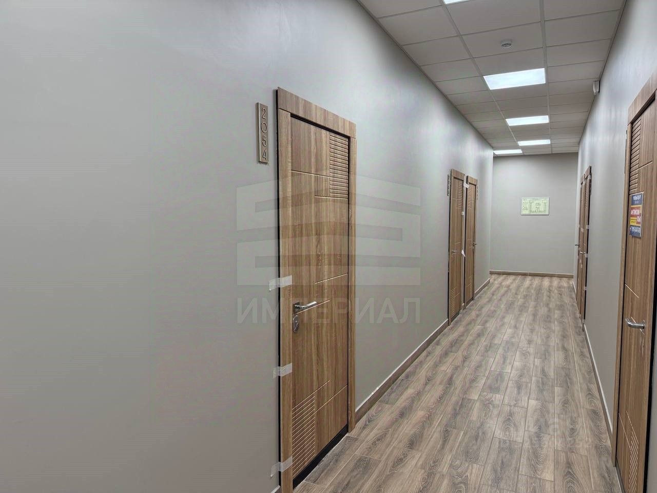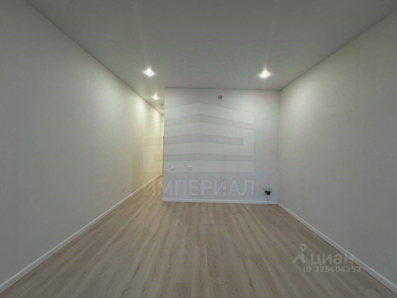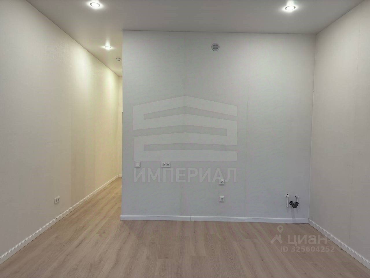 На стенах поклеены обои под покраску, на полу постелен ламинат с плинтусами и откосами. Есть вытяжная вентиляция в санузле и на кухне, выходы хв/гв, место под раковину на кухне. Кроме того, в помещениях уже есть выключатели освещения, розетки для бытовой техники и роутера, а также сделаны закладные для оптоволокна для интернета.