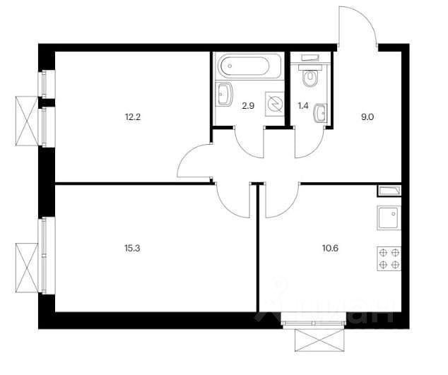 В квартире 2 изолированные комнаты, кухня, раздельный санузел.