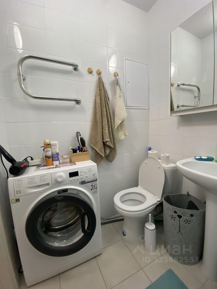В ванной: - стиральная машина Hotpoint ariston - раковина, ванная, унитаз