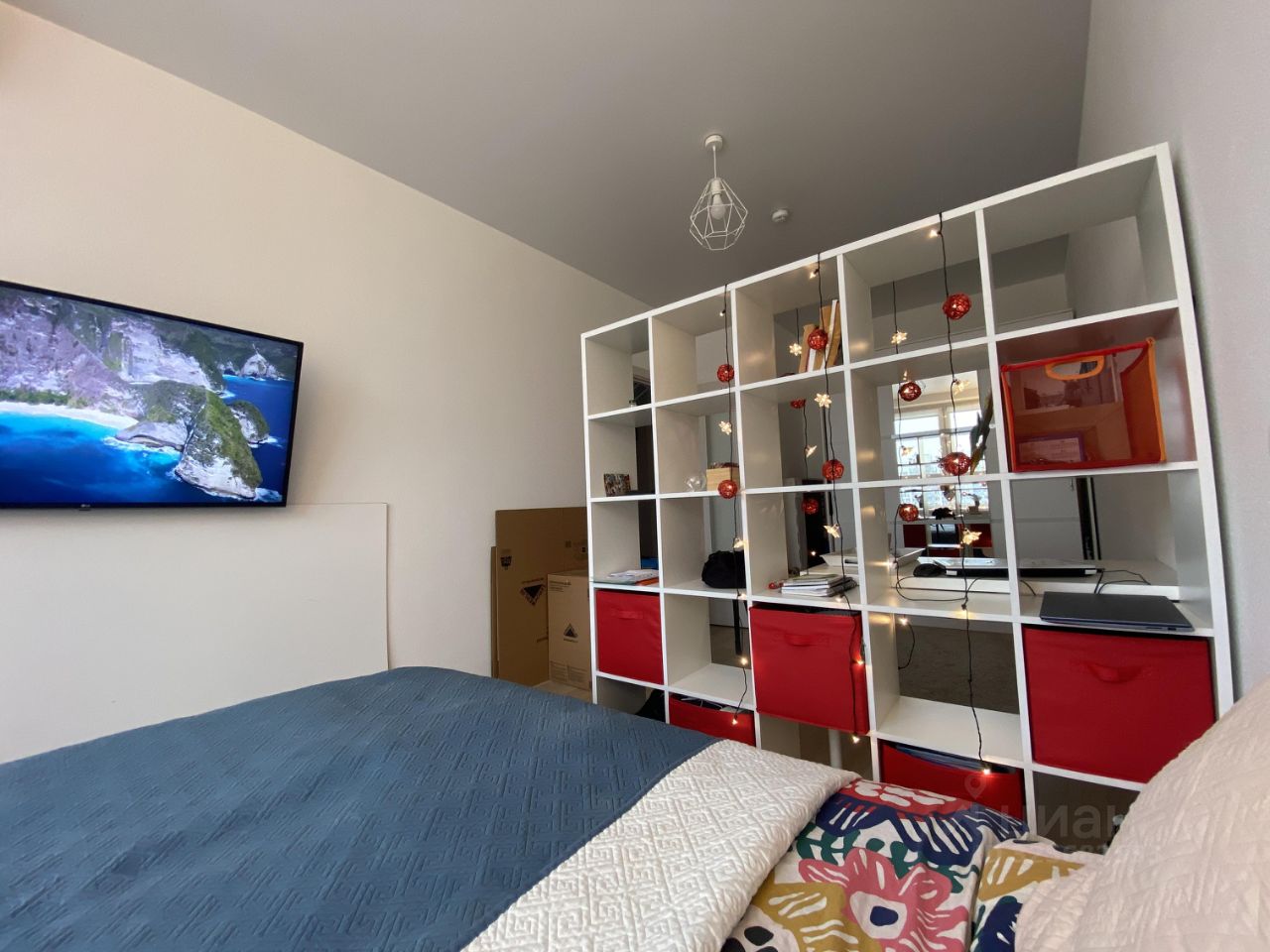 В комнате: - 2-х спальная кровать с ортопедическим матрасом от Ascona с подъемным механизмом и дополнительной зоной хранения - кондиционер от Electrlux - LED телевизор LG 49UK6200PLA Ultra HD 4K (2160 p) - кронштейн для телевизора - стеллаж 5Х5 для книг и мелочей - трехстворчатый шкаф для хранения вещей