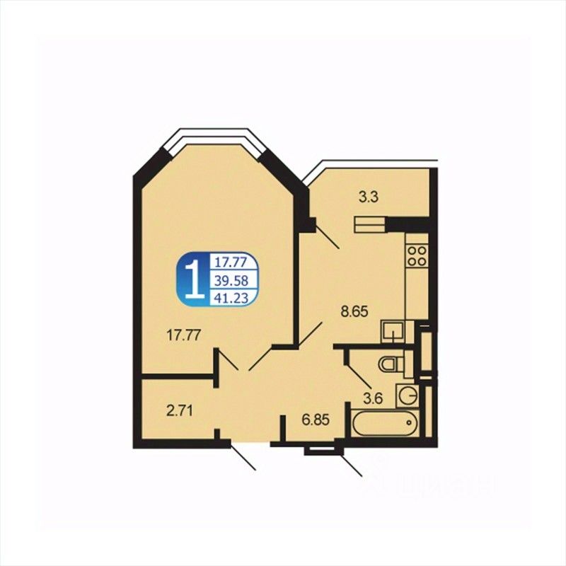 Общая площадь41 м2