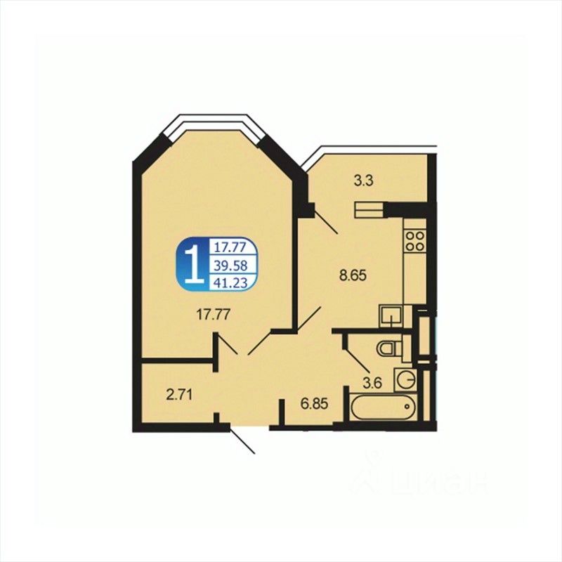 Общая площадь40,9 м2