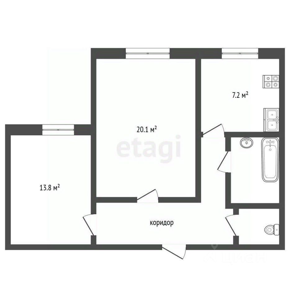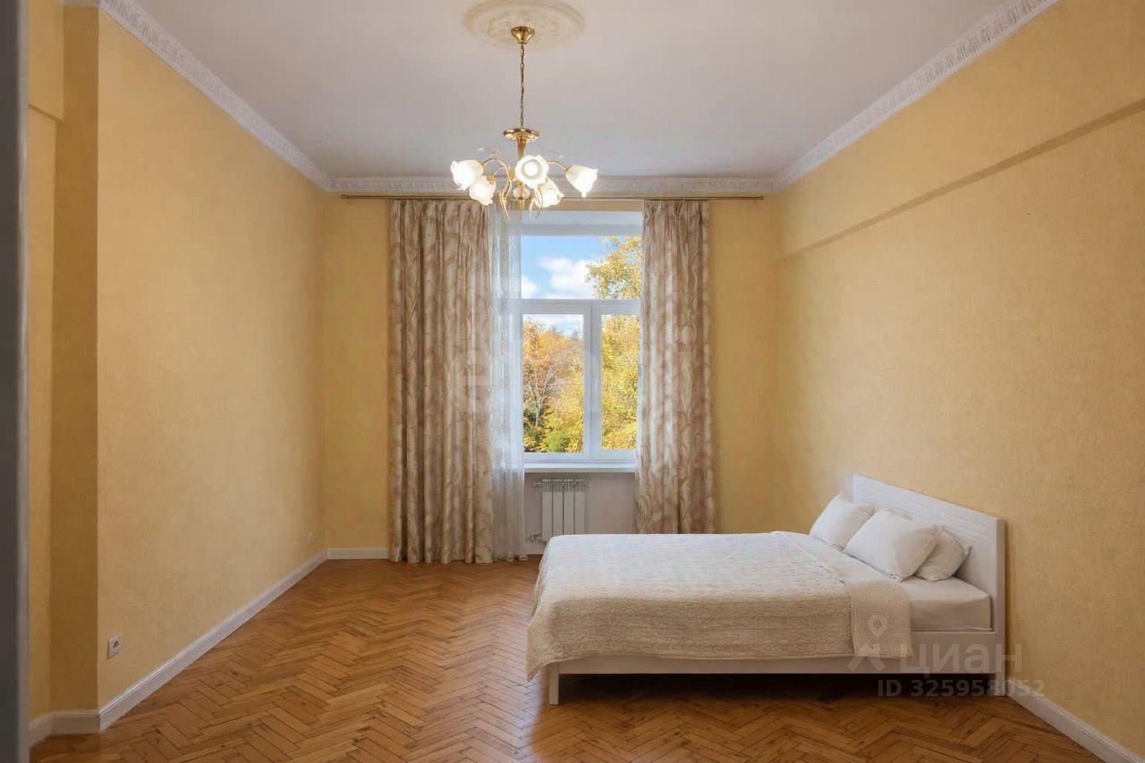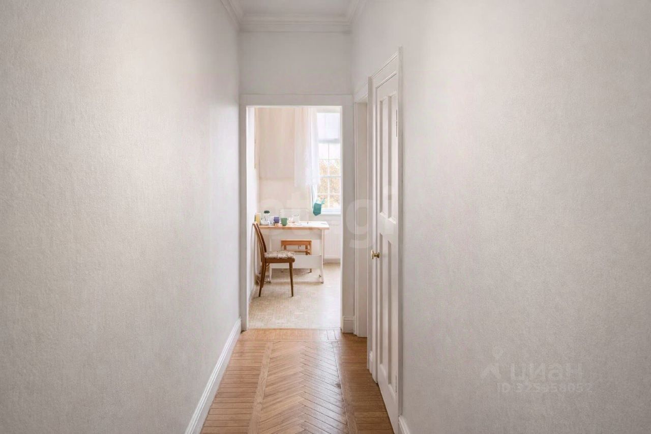 Общая площадь квартиры составляет 59,1 кв. м. Высота потолков — 3,2 м. Окна выходят во двор, комнаты изолированы, что обеспечивает удобство и приватность.