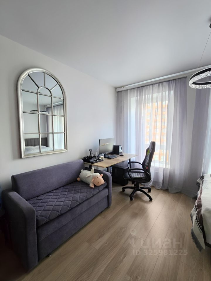 Комната просторная и светлая за счёт наличия двух больших окон. Тёплая и чистая, проблем с окнами и отоплением нет. В квартире установлен качественный кухонный гарнитур с двухкомфорочной плитой, посудомоечной машиной, мини-печью и подсветкой рабочей поверхности. В коридоре находится вместительный удобный шкаф. Санузел совмещенный, с душем. В нём есть электрический полотенцесушитель.