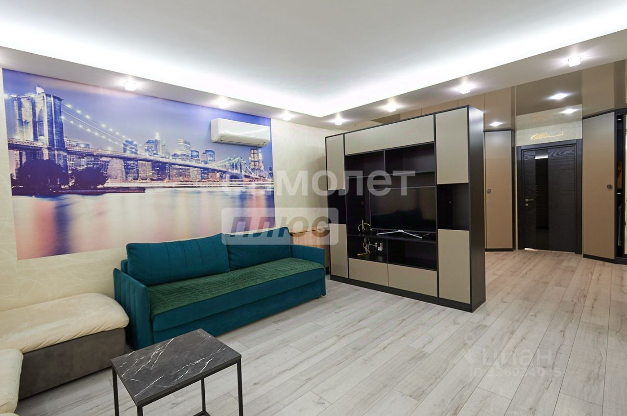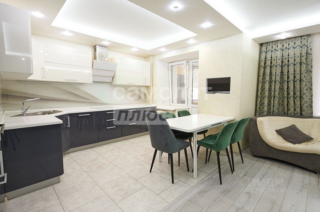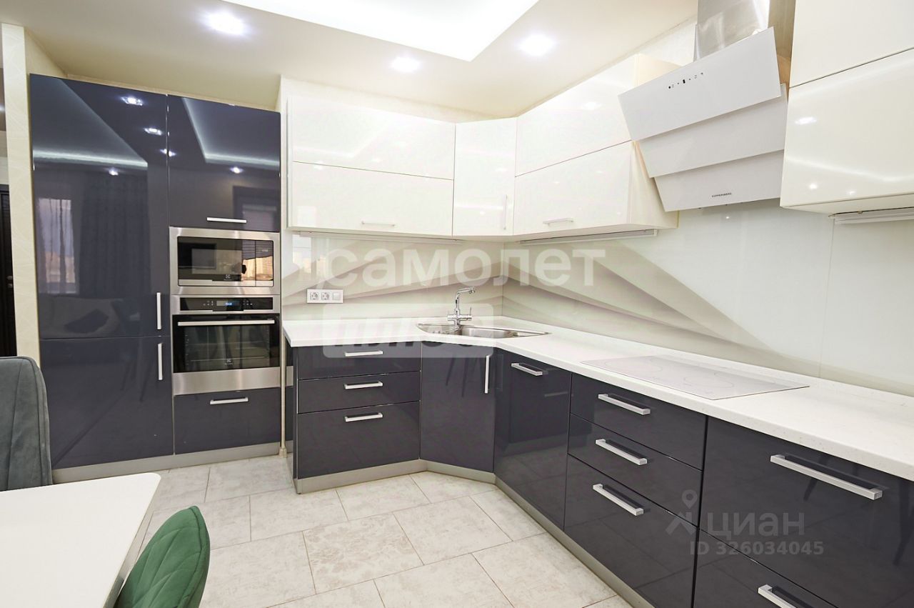 Просторная кухня-гостиная, две лоджии, два санузла, есть гардеробная. Мебель и техника остаются в квартире-входят в стоимость. Окна выходят на две стороны, с красивым панорамным видом. Хорошие дружелюбные соседи.