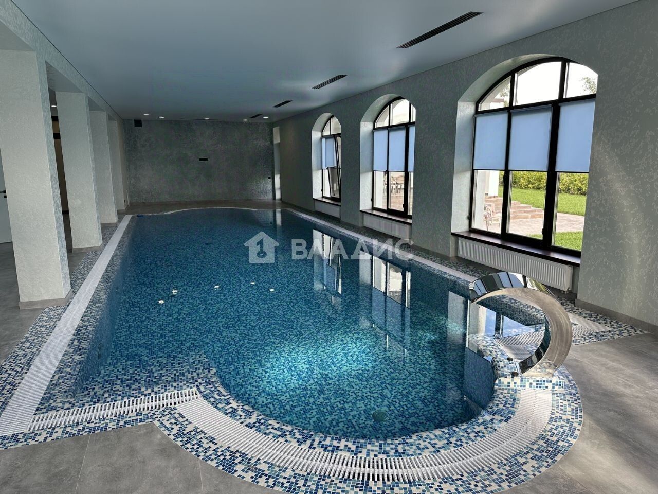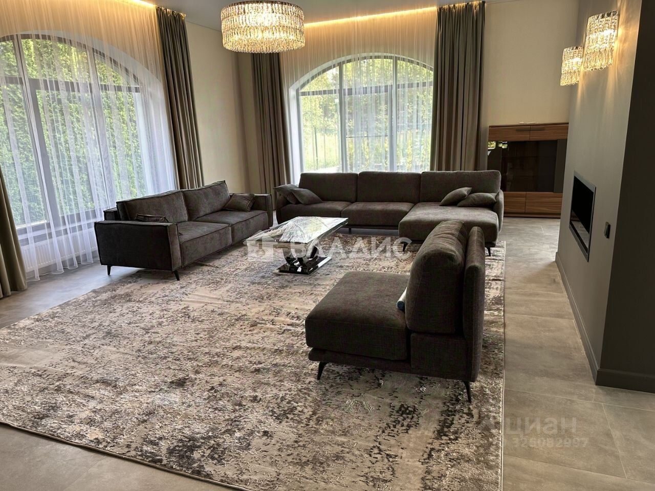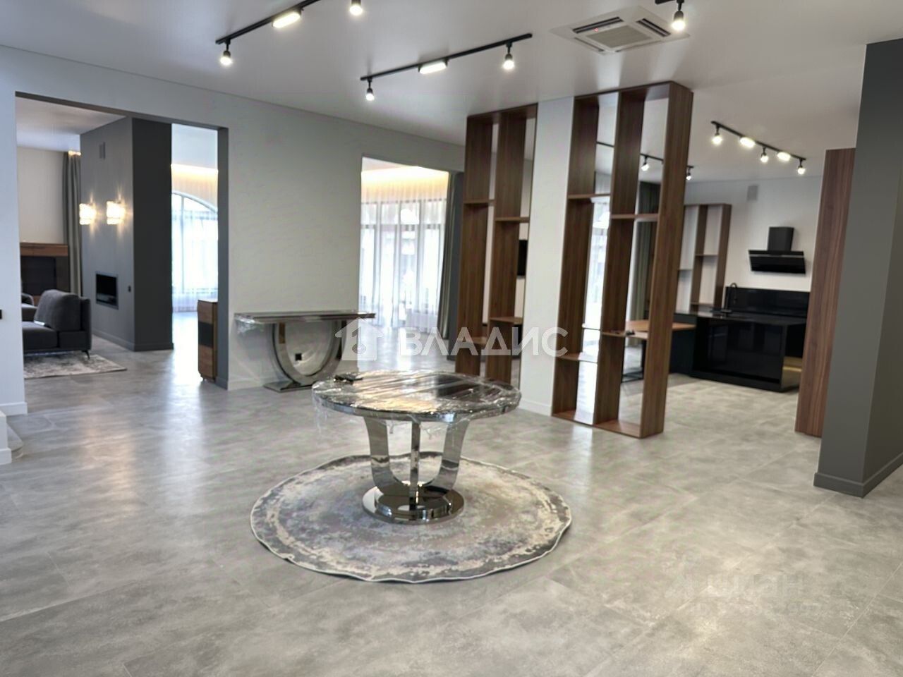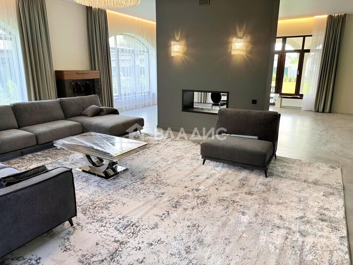 Первый этаж: хол, просторная гостиная с камином на две стороны, столовая, открытая кухня, выход на террасу 20 м с зоной барбекю, кабинет, гостевая спальня, переливной бассейн 15 на 5 метра, сауна с зоной отдыха и тренажерном залом. Дом оборудован приточно-вытяжной вентиляцией и кондиционированием.