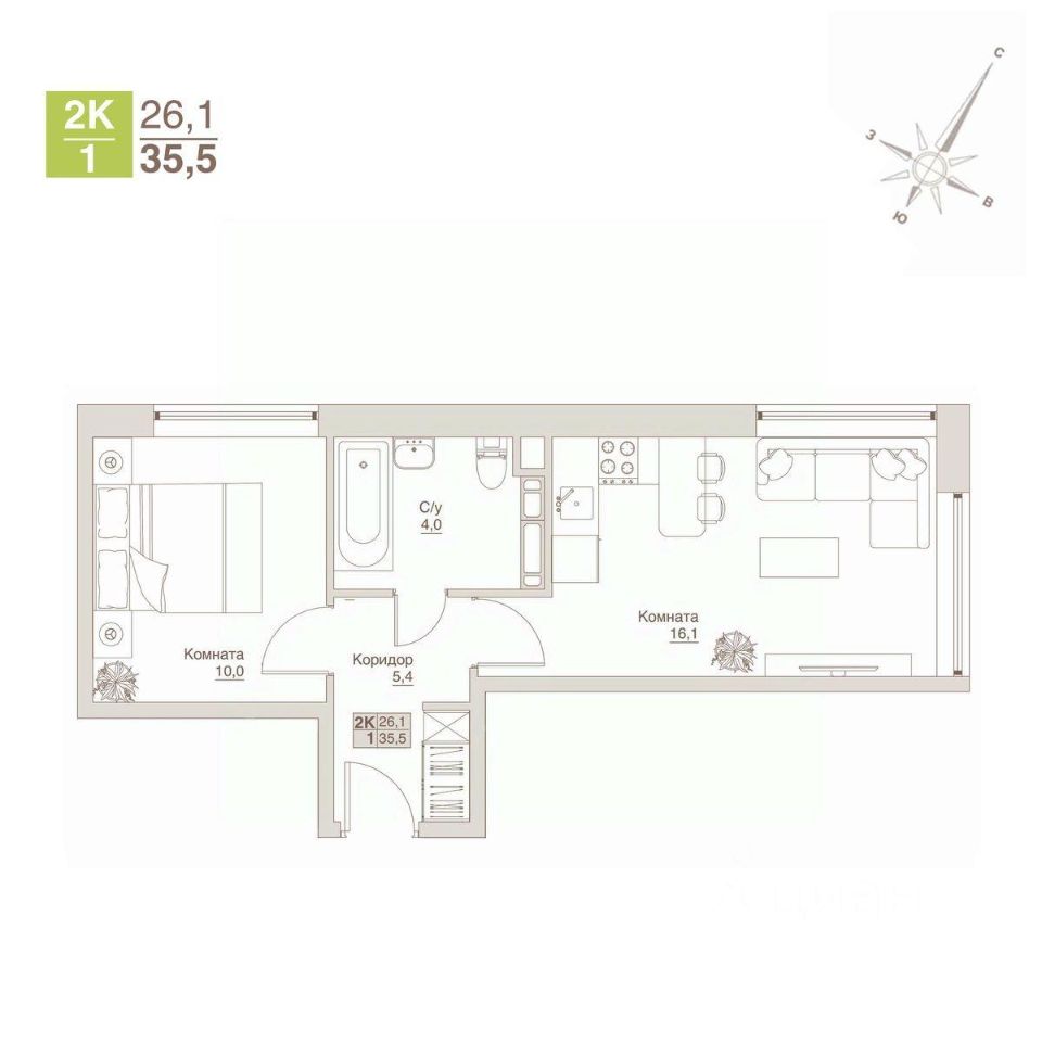 Общая площадь35,5 м2