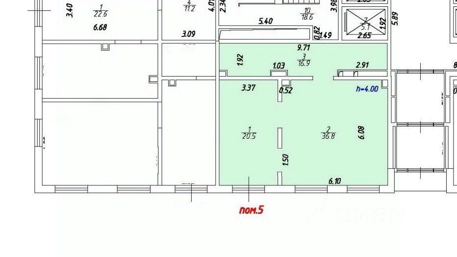 Тип здания: жилой дом, помещение встроенное, Уровень: первый этаж, Высота потолка, h= 4 м, Оконная группа: витрины, Входов: 1, отдельный, с основного фасада, Кол-во ступеней: 0,Электрическая мощность: 15 кВт, III категория, 380В-3 фазы, Вентиляция: автономная на крышу, Состояние: косм.