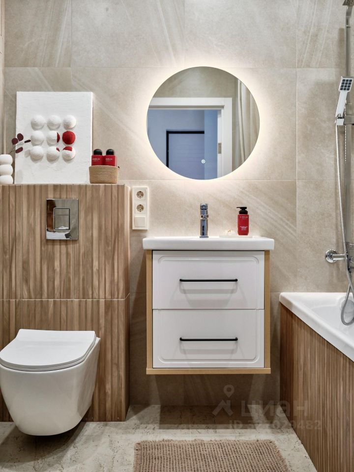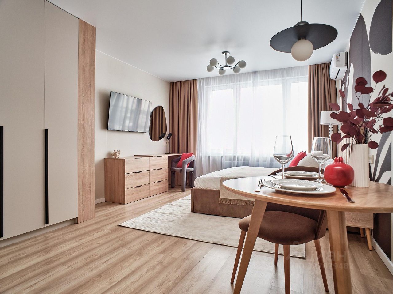 Квартира оснащена кондиционером и необходимой техникой: — холодильник с тихим мотором, — посудомоечная машина с тремя корзинами, — встроенные СВЧ-печь и духовой шкаф, — индукционная варочная панель на 2 конфорки с flex-зоной, — вытяжка с угольным фильтром, — каменная мойка со встроенным дозатором, — фильтр для воды, — стиральная машина с функцией сушки, — телевизор 50.