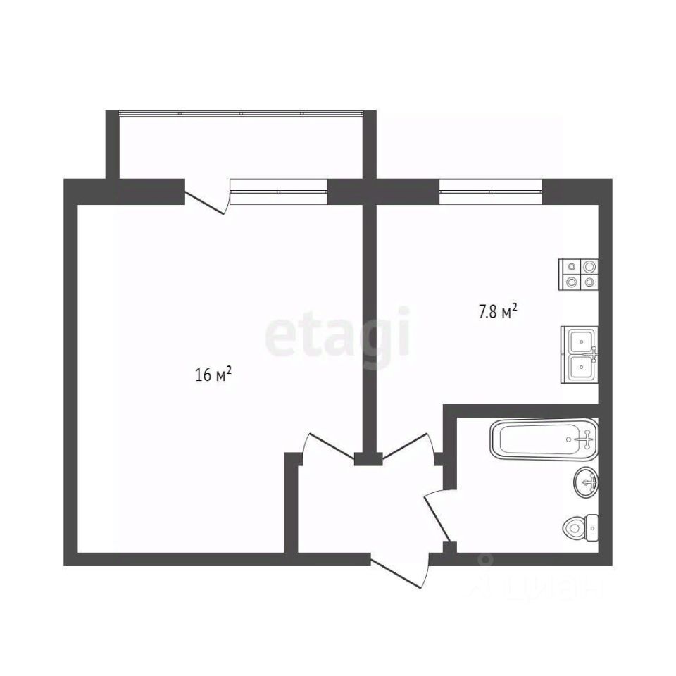 Главная особенность — удобная планировка, которая позволяет зонировать пространство комнаты на две полноценные зоны: спальню и гостиную. Здесь будет комфортно как одному человеку, так и семейной паре.