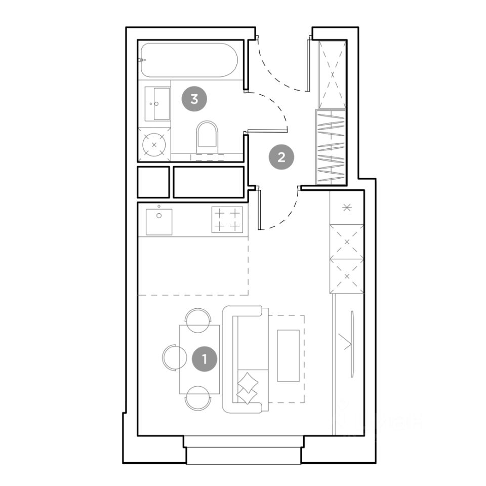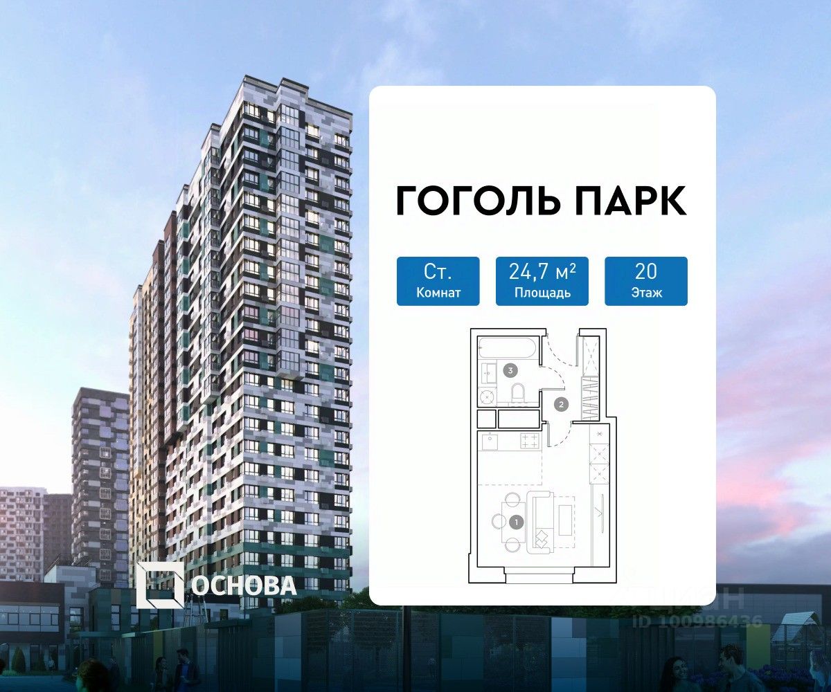 Продается студия площадью 24.7 кв.м. на 20-м этаже 25 этажного дома в ЖК ''Гоголь парк'' от ГК ОСНОВА.