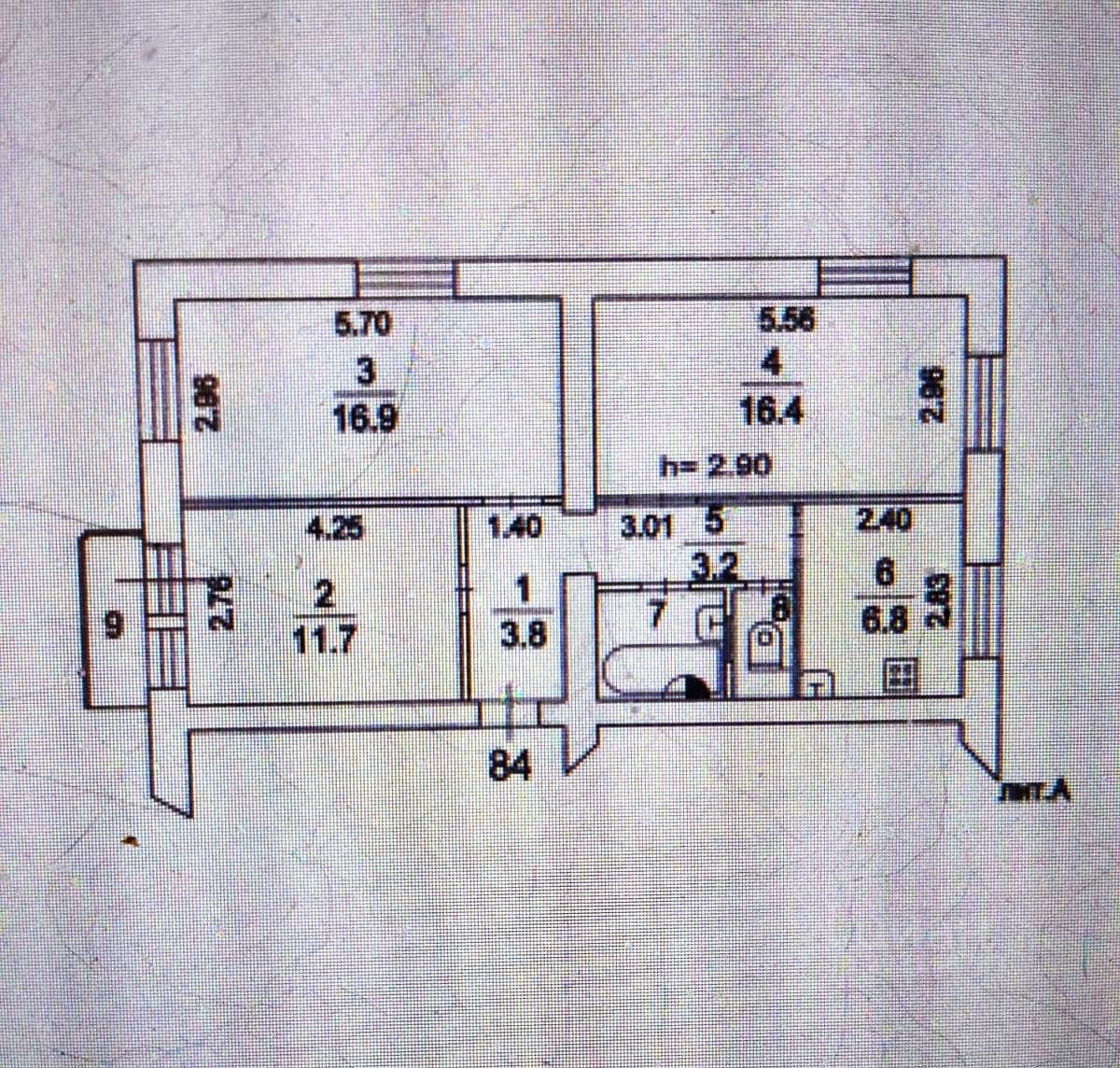 Комнаты большие и изолированные, в одной есть балкон, в двух других по 2 окна, окна на 3 (!) стороны, поэтому квартира очень светлая в любое время дня. Потолки 3 м, как и положено сталинкам, перекрытия железобетонные.